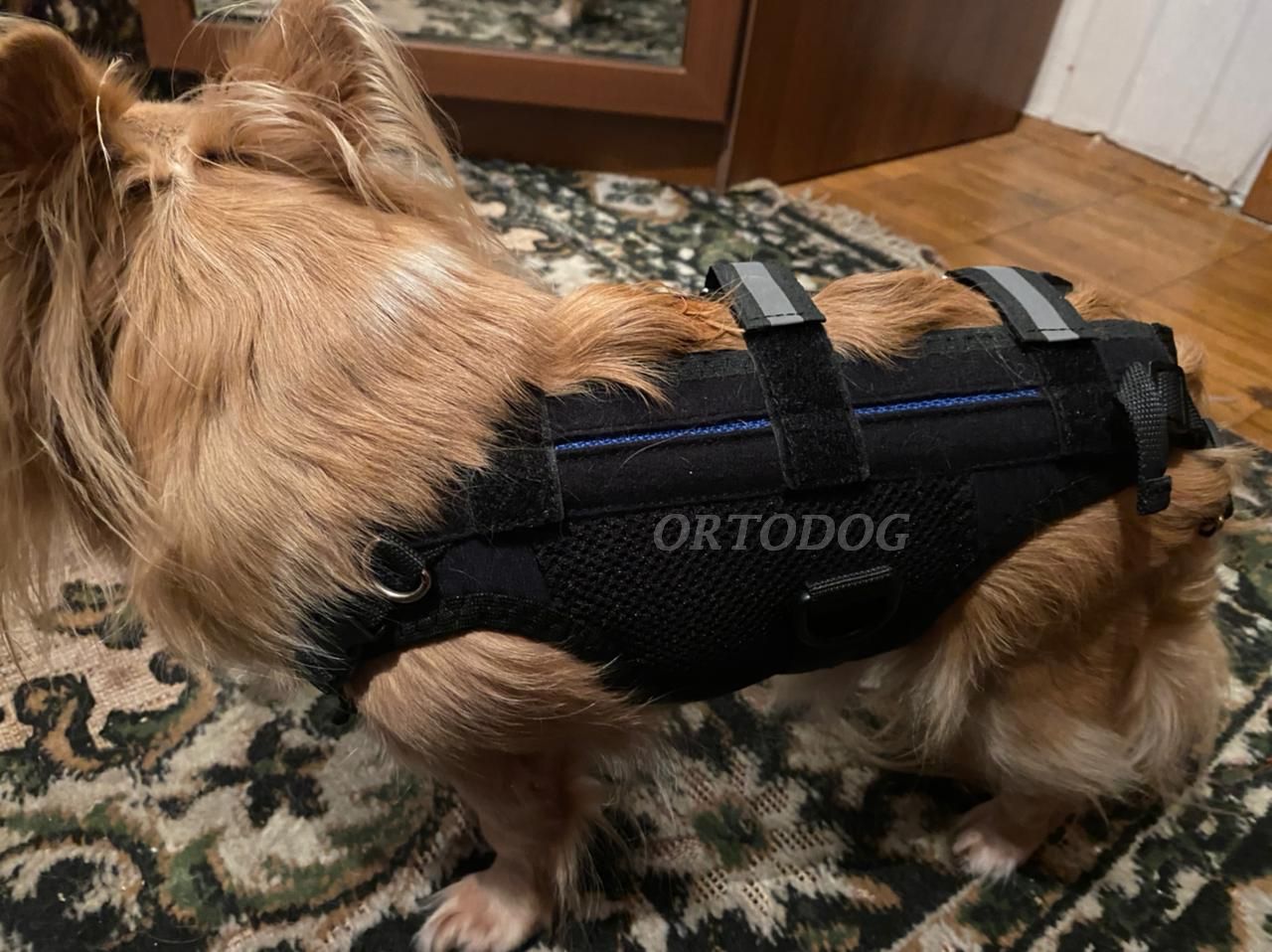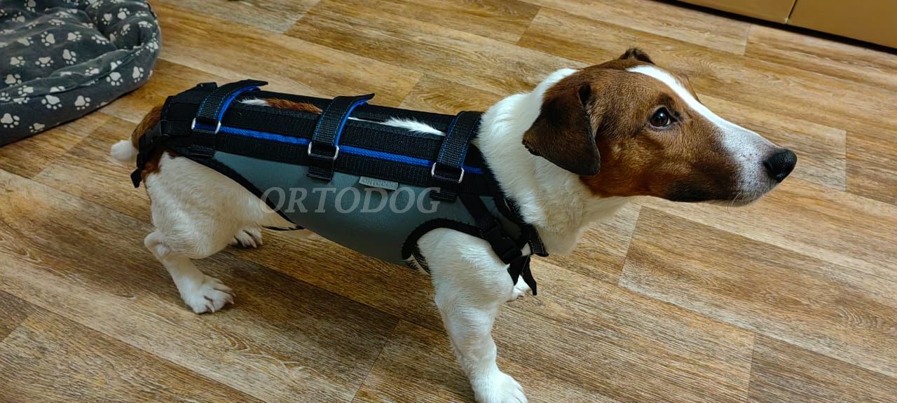 Добрый день! В корсете ходит хорошо! Вчера гуляли, идёт на лапах, не падает.